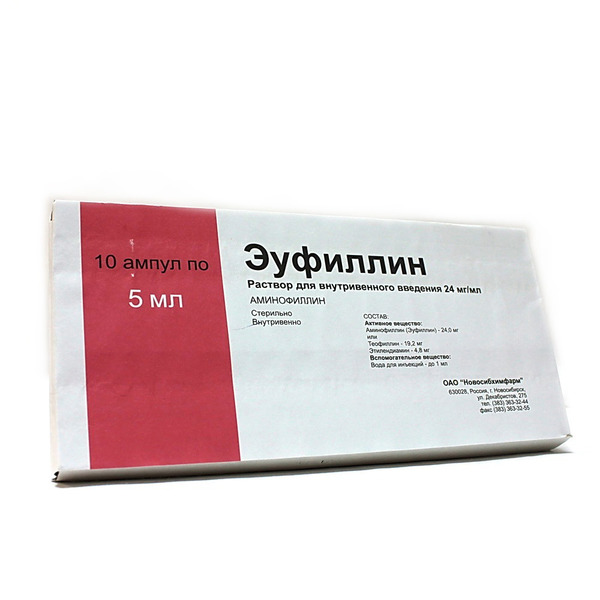 аминофиллин - 24,0 мг или теофиллин - 19,2 мг и этилендиамин - 4,8 мг
