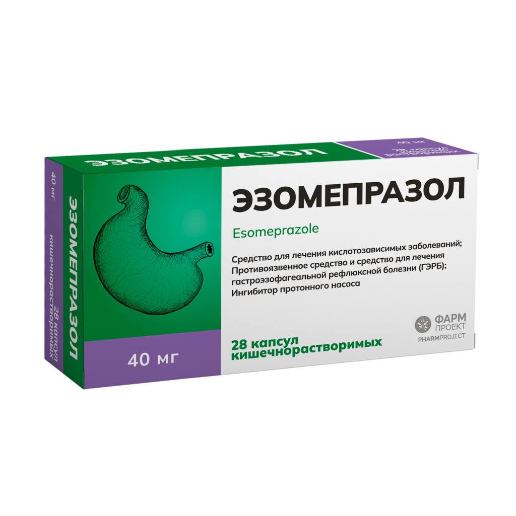 Эзомепразол, 40 мг, капсулы кишечнорастворимые