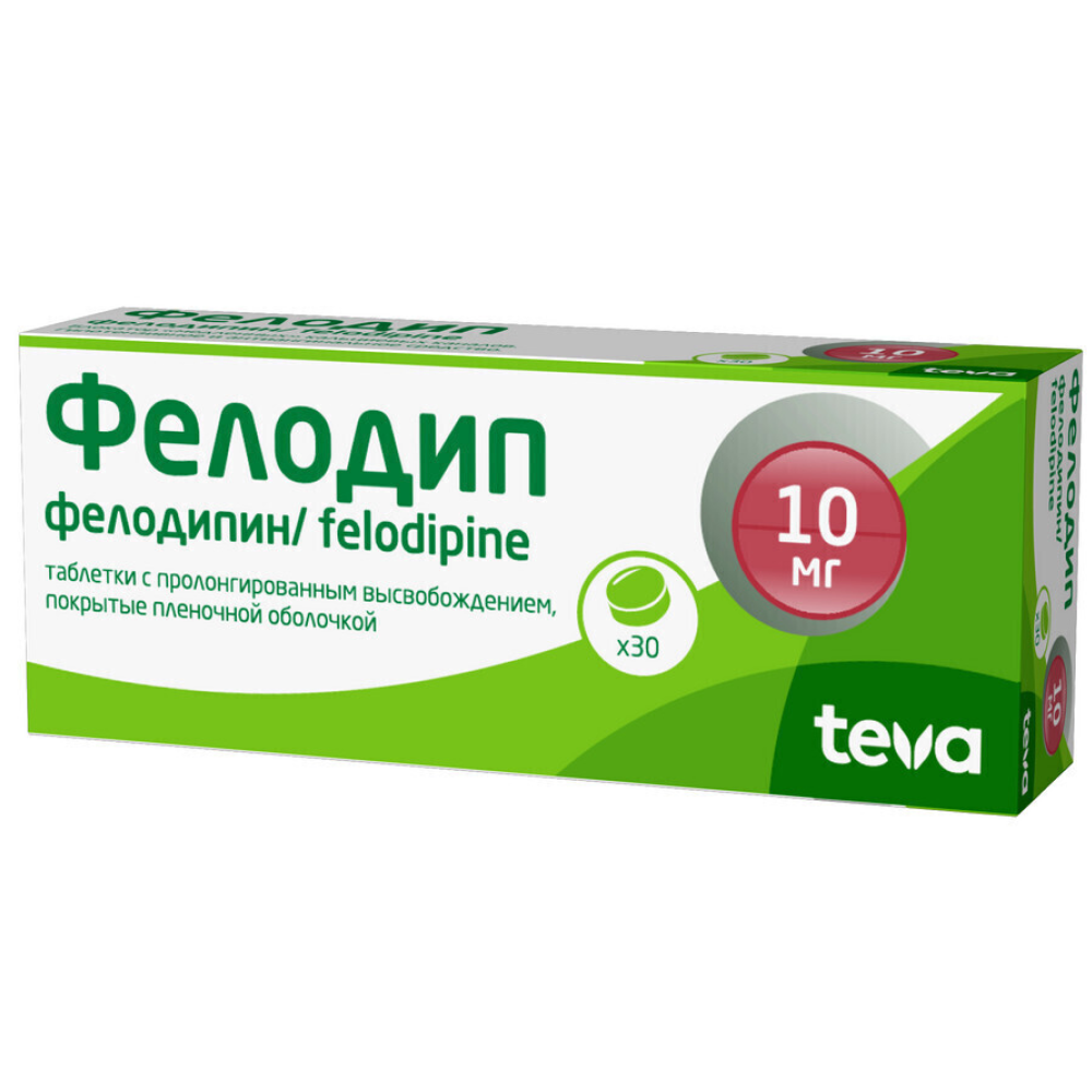 Активное вещество: фелодипин 10 мг.