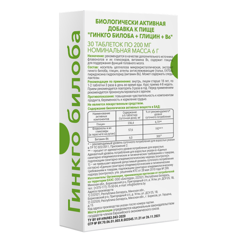 Сертификаты и лицензии “Гинкго Билоба + Глицин + В6 30 шт таблетки”