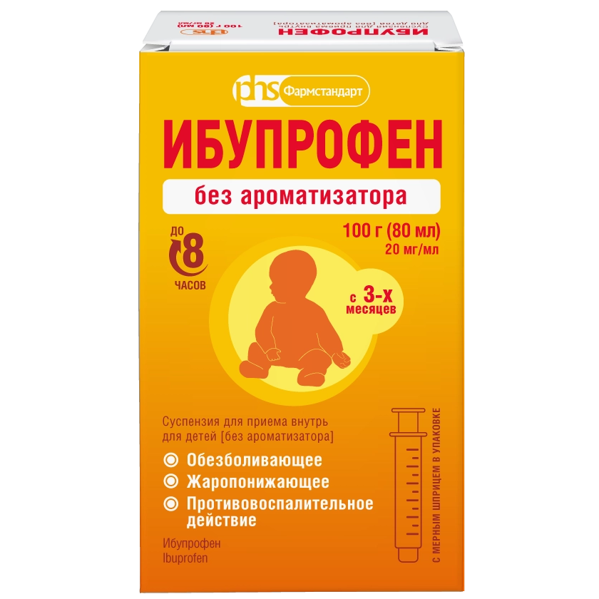 Ибупрофен 20 мг/мл 80 мл суспензия для приема внутрь для детей без ароматизатора + мерный шприц