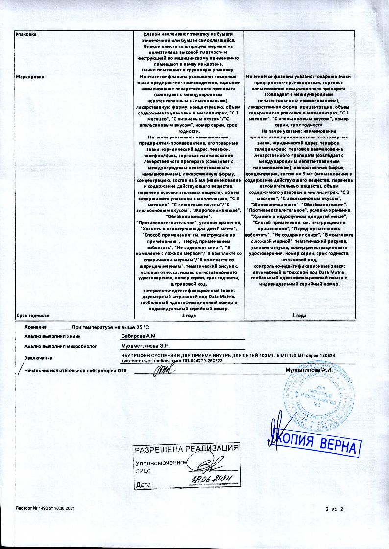 Действующее вещество: ибупрофен в пересчете на 100% вещество - 2,00 г.