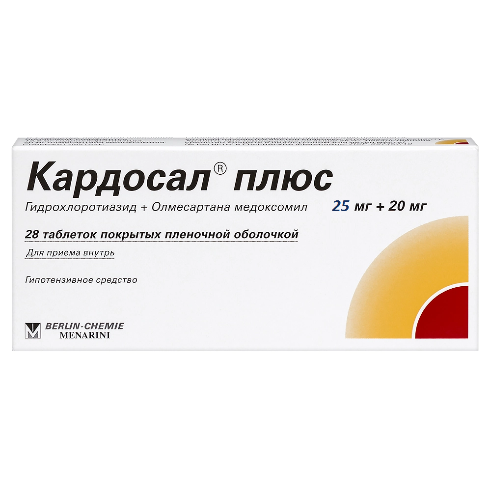 При отсутствии адекватного контроля АД на фоне приема препарата Кардосал® плюс, содержащего 20 мг олмесартана медоксомила и 12,5 мг гидрохлоротиазида, возможно применение препарата Кардосал® плюс, содержащего 20 мг олмесартана медоксомила и 25 мг гидрохлоротиазида по 1 таблетке 1 раз в сутки. Максимальная доза препарата Кардосал® плюс составляет 20 мг олмесартана медоксомила и 25 мг гидрохлоротиазида 1 раз в сутки.