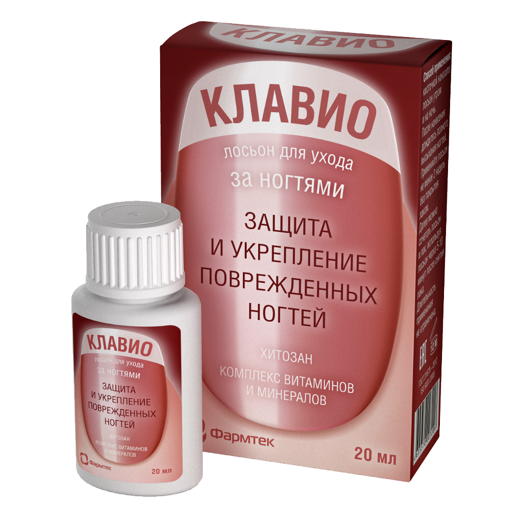 Основой лосьона КЛАВИО является хитозан – биологический полимер, способствующий выравниванию структуры ногтевой пластины и защищающий ее от проникновения внешних агрессивных веществ и потери влаги.