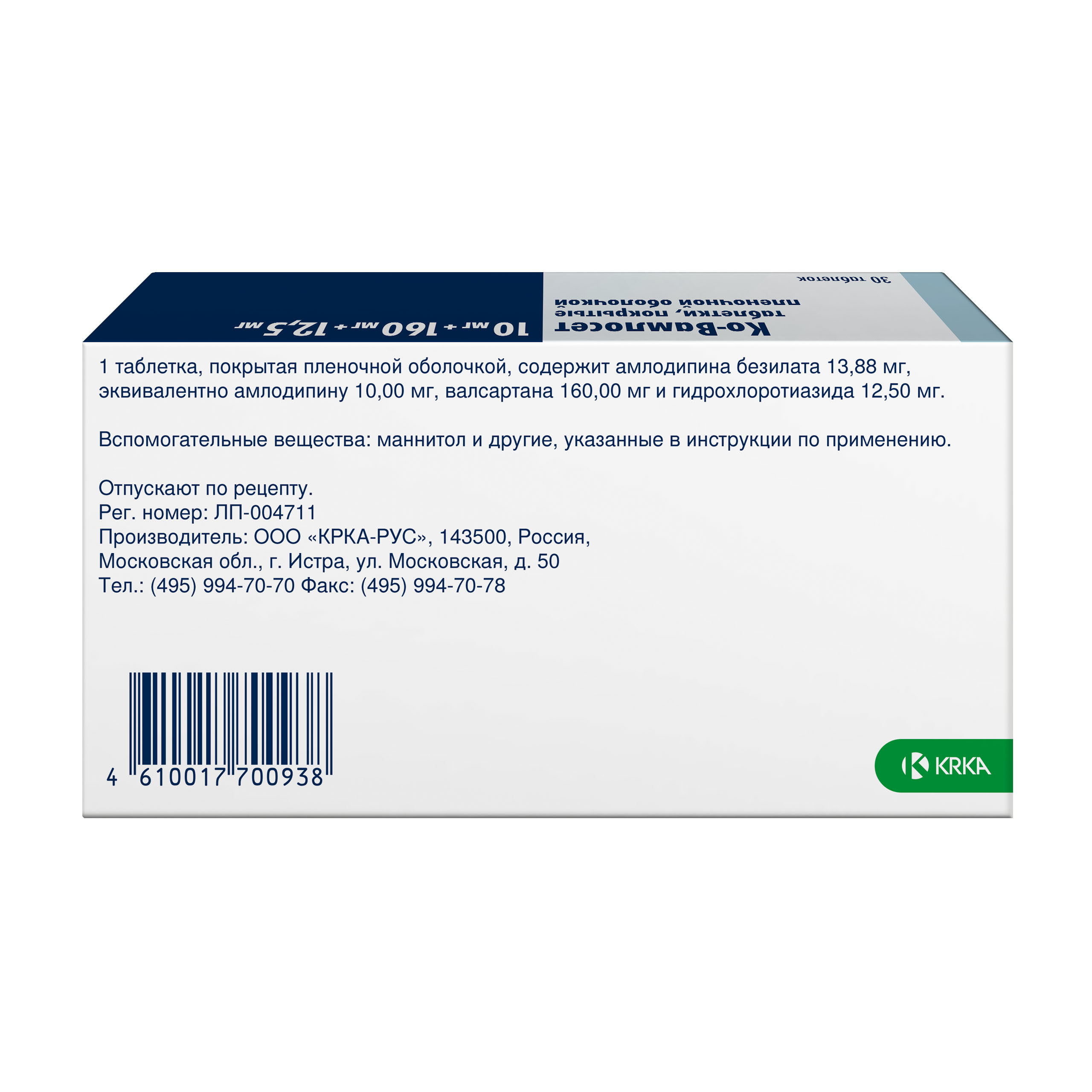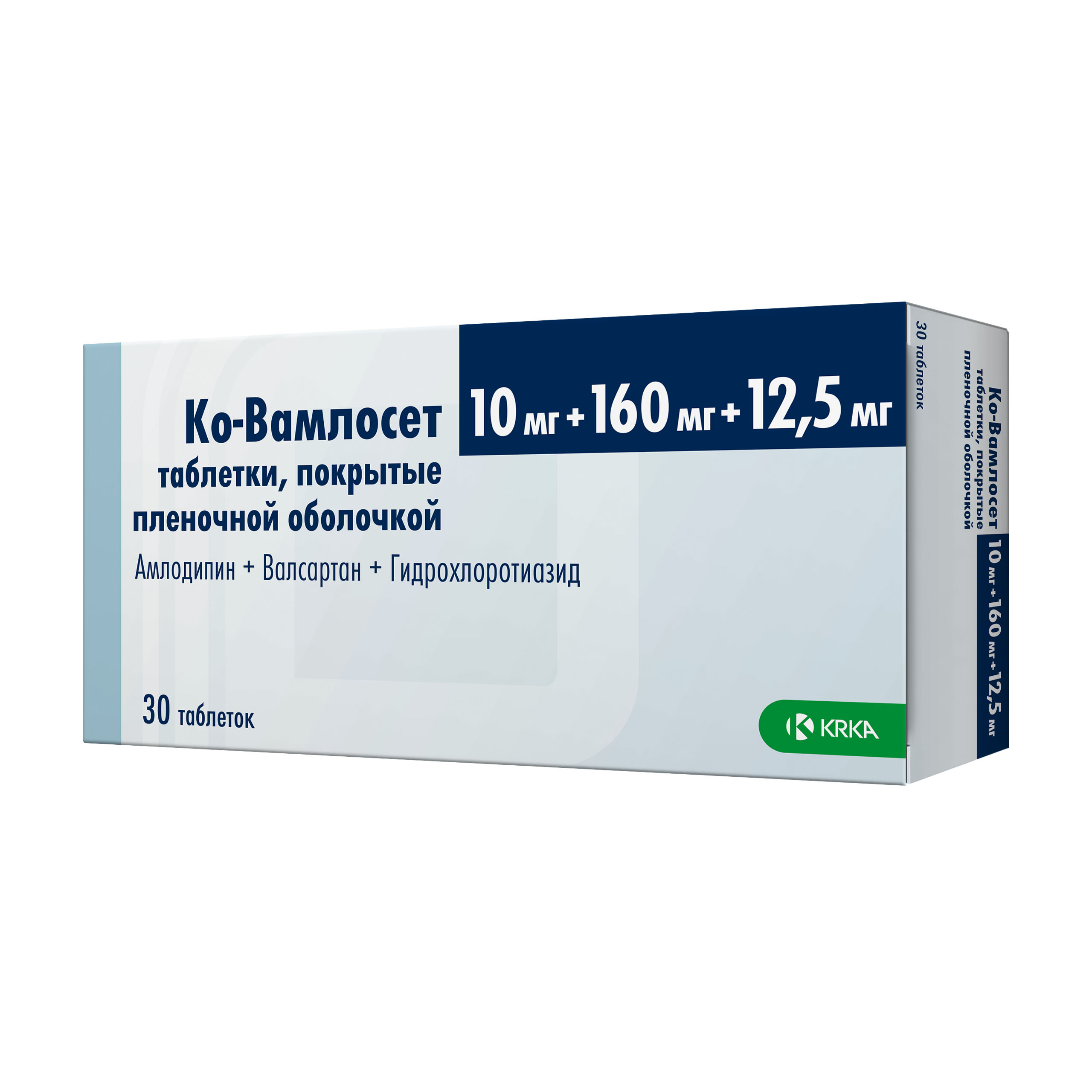 Ко-Вамлосет, 10 мг + 160 мг + 12,5 мг, таблетки, покрытые пленочной оболочкой