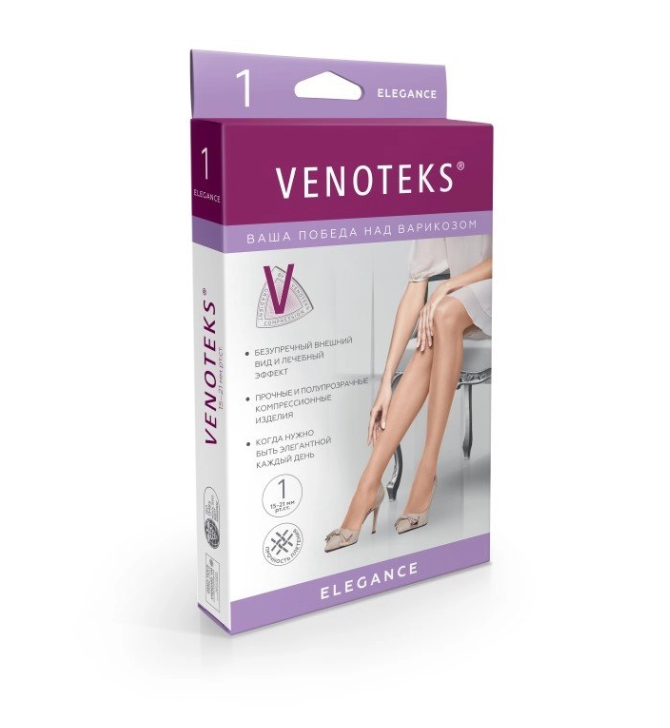 VENOTEKS ELEGANCE предотвращают ;усталость и тяжесть в ногах, снимают небольшие отёки и другие начальные проявления заболевания вен. Колготки рекомендованы для профилактики и при начальных стадиях поражения вен на уровне бедра, подколенной ямки голени и/или стопы у беременных женщин.