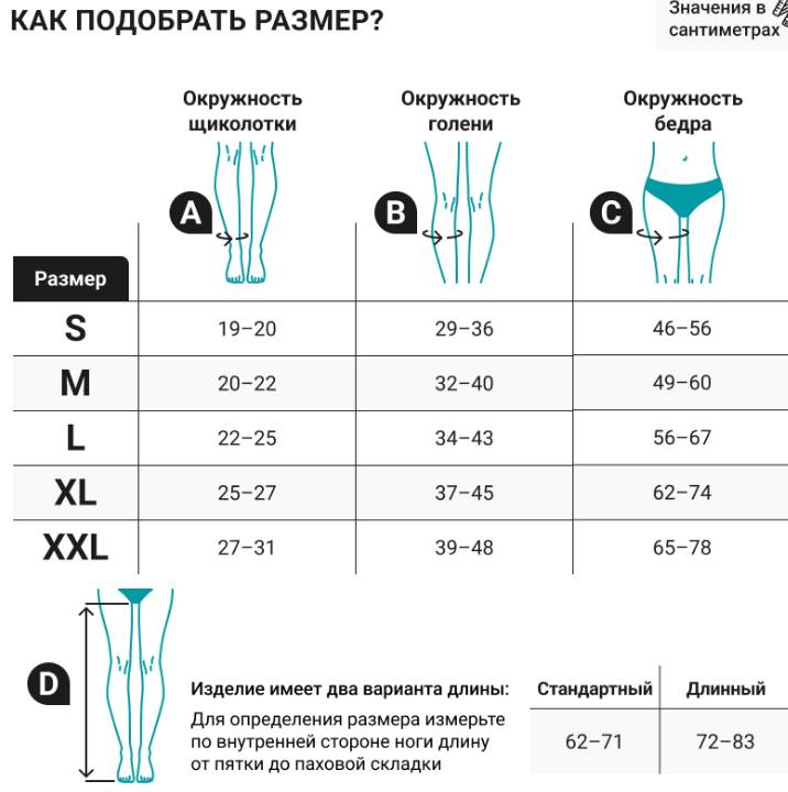 - Физиологически распределенная градуированная компрессия: лодыжка 100%, верхняя часть голени 70%, средняя треть бедра 40%,