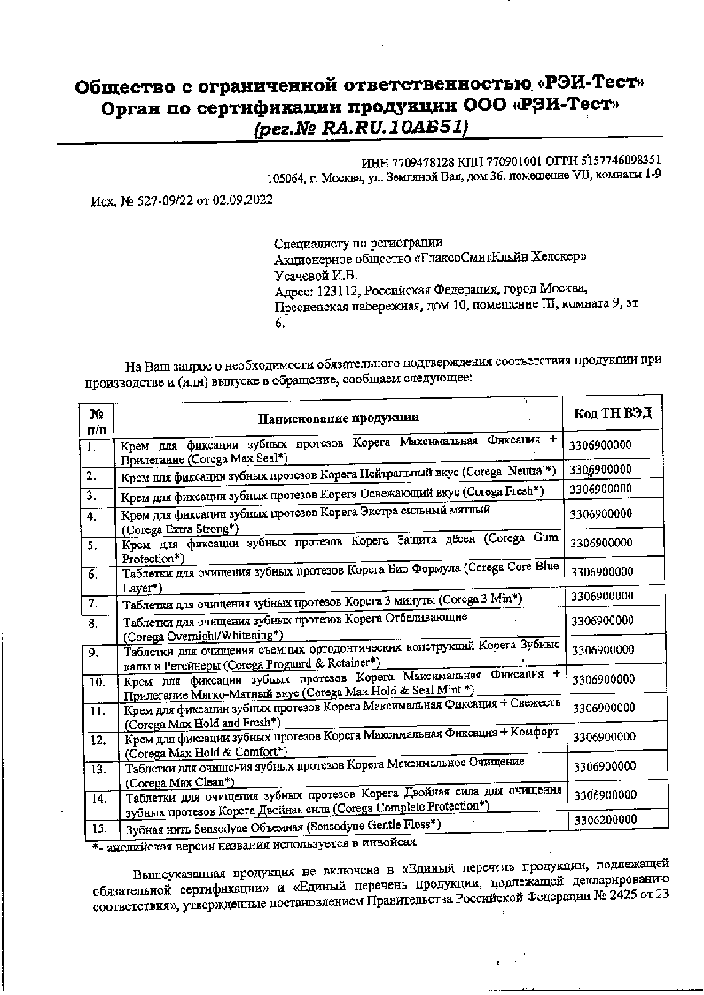 **Обоснование свойств по отсутствию абразивных частиц в составе средств для очистки зубных протезов Корега. Обзор компании ГСК, 2007