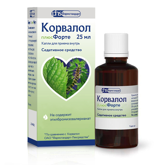 Корвалол плюсФорте содержит в своем составе этиловый спирт (см. раздел «Особые указания»), поэтому препарат должен применяться с осторожностью при алкоголизме, а также у пациентов из группы высокого риска, в том числе с заболеваниями печени, черепно-мозговыми травмами, заболеваниями головного мозга.