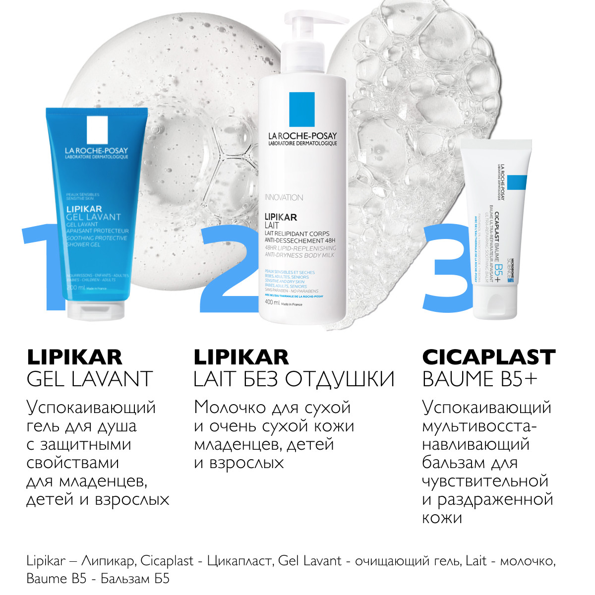 Молочко LIPIKAR LAIT восстанавливает липидный барьер кожи благодаря насыщенной формуле, на основе колд крема - классической комбинации защитных липидов, обогащенной маслом Карите 10%. Средство содержит Термальную воду La Roche-Posay в концентрации 60%, известную своими успокаивающими и увлажняющими свойствами и Ниацинамид, который обеспечивает продолжительный комфорт даже самой сухой, деликатной и чувствительной кожи младенцев, детей и взрослых. Гиппоаллергенная формула молочка гаммы Липикар подходит для ежедневного использования. Лёгкая текстура средства мгновенно впитывается, она нелипкая и нежирная. LIPIKAR LAIT протестировано под дерматологическим и педиатрическим контролем.