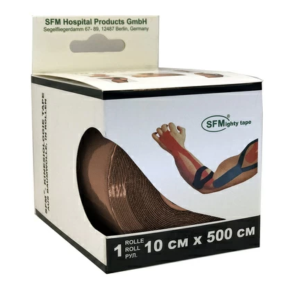Кинезио тейпы SFM могут использоваться вместе с другими видами терапии, например, криотерапией, лазеротерапией, гидротерапией, массажем и электростимуляцией, лечебной физкультурой.