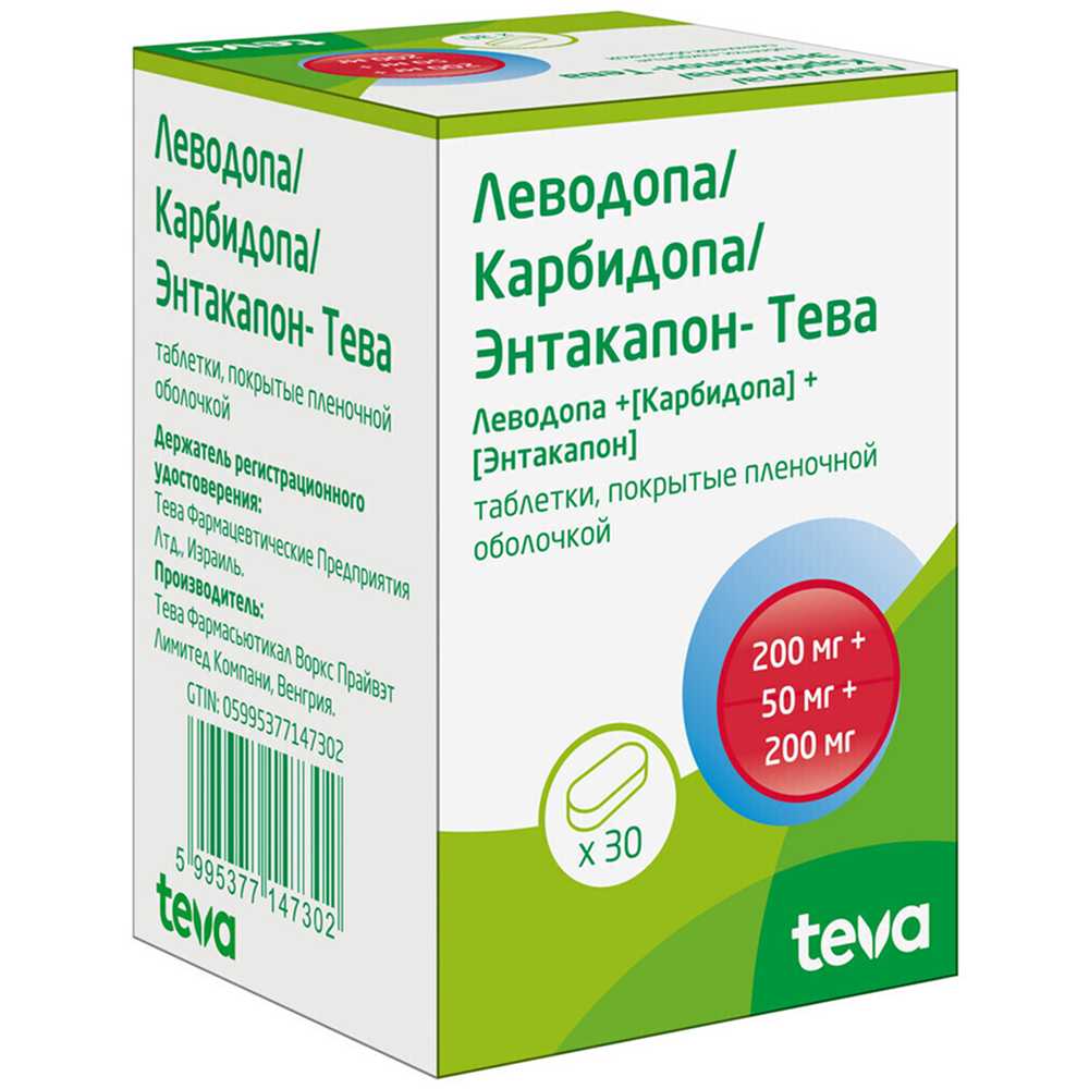 Леводопа/Карбидопа/Энтакапон-Тева 200 мг + 50 мг + 200 мг 30 шт таблетки покрытые пленочной оболочкой