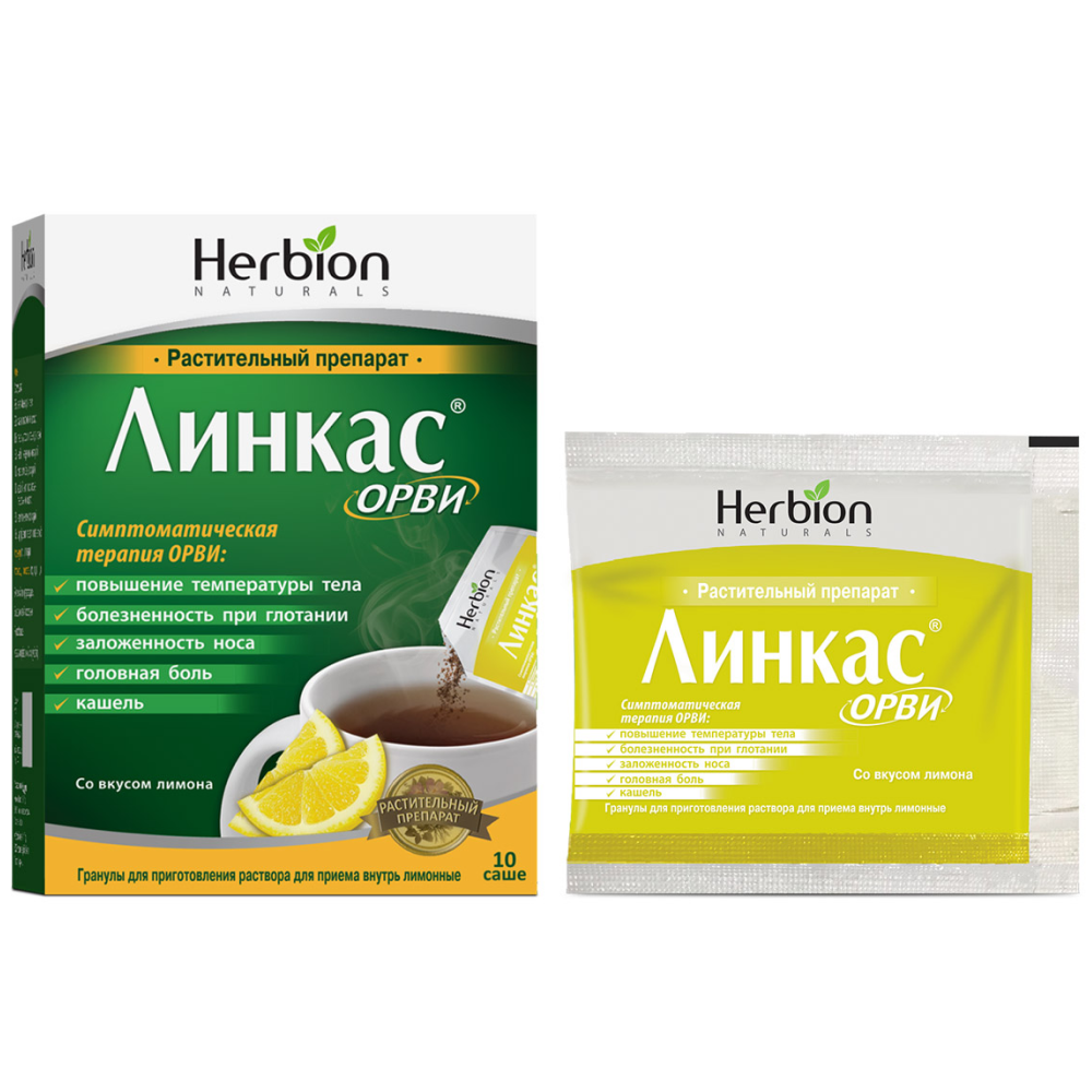 Инструкция по применению Линкас ОРВИ 5,6 г 10 шт гранулы для приготовления раствора для приема внутрь саше лимон