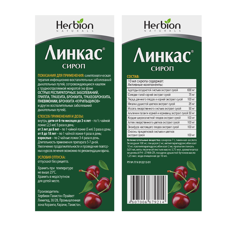 Инструкция по применению Линкас 150 мл сироп с ароматом вишни