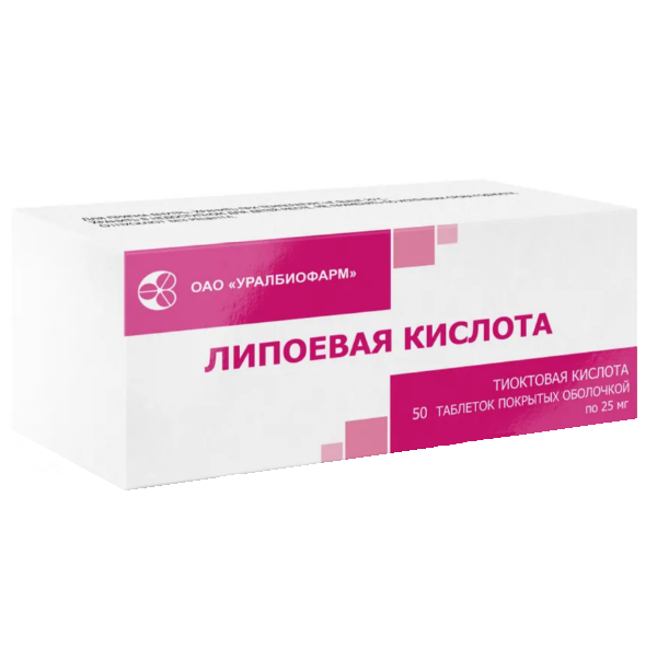 Усиливает противовоспалительное действие глюкокортикостероидов. Снижает эффективность цисплатина. Усиливает действие инсулина и пероральных гипогликемических средств. Связывает металлы, поэтому не следует принимать одновременно с препаратами, содержащими ионы металлов (препараты железа, магния, кальция); интервал между приемом должен составлять не менее 2 часов. Этанол и метаболиты ослабляют действие липоевой кислоты.