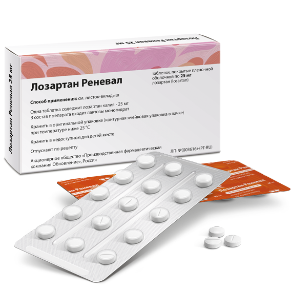 Лозартан Реневал 25 мг 30 шт таблетки покрытые пленочной оболочкой