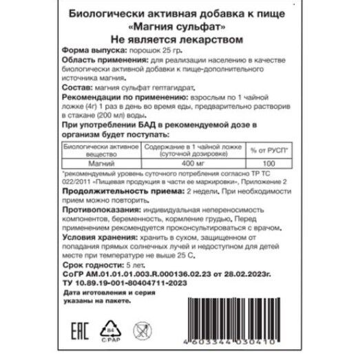 Биологически активная добавка к пище - дополнительный источник магния.