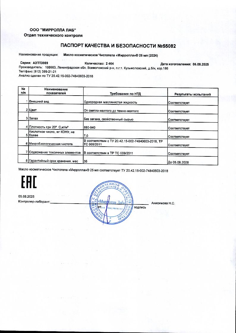 Сертификаты и лицензии “Масло чистотела 25 мл косметическое”