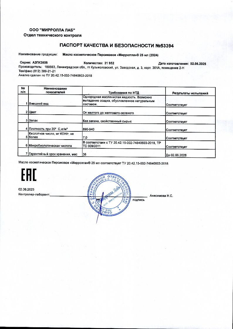 Масло персиковое 25 мл косметическое