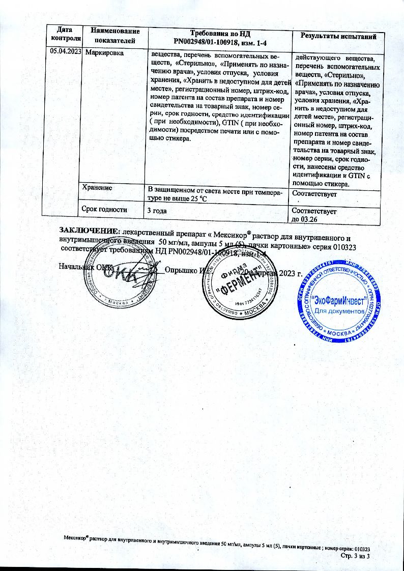 При лечении острого инфаркта миокарда в составе комплексной терапии Мексикор® вводят в/в или в/м в течение 14 сут на фоне стандартной терапии, включающей нитраты, бета-адреноблокаторы, ингибиторы АПФ, тромболитики, антикоагулянты и антиагреганты, а также симптоматические средства по показаниям.