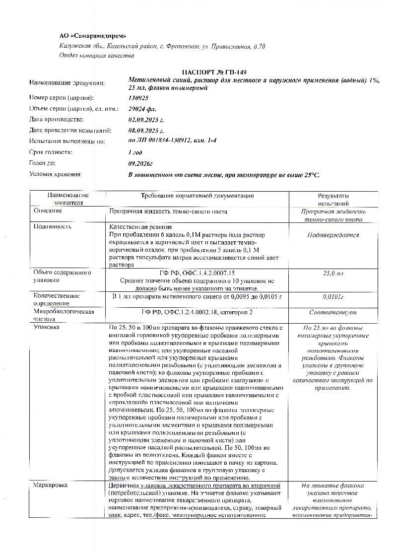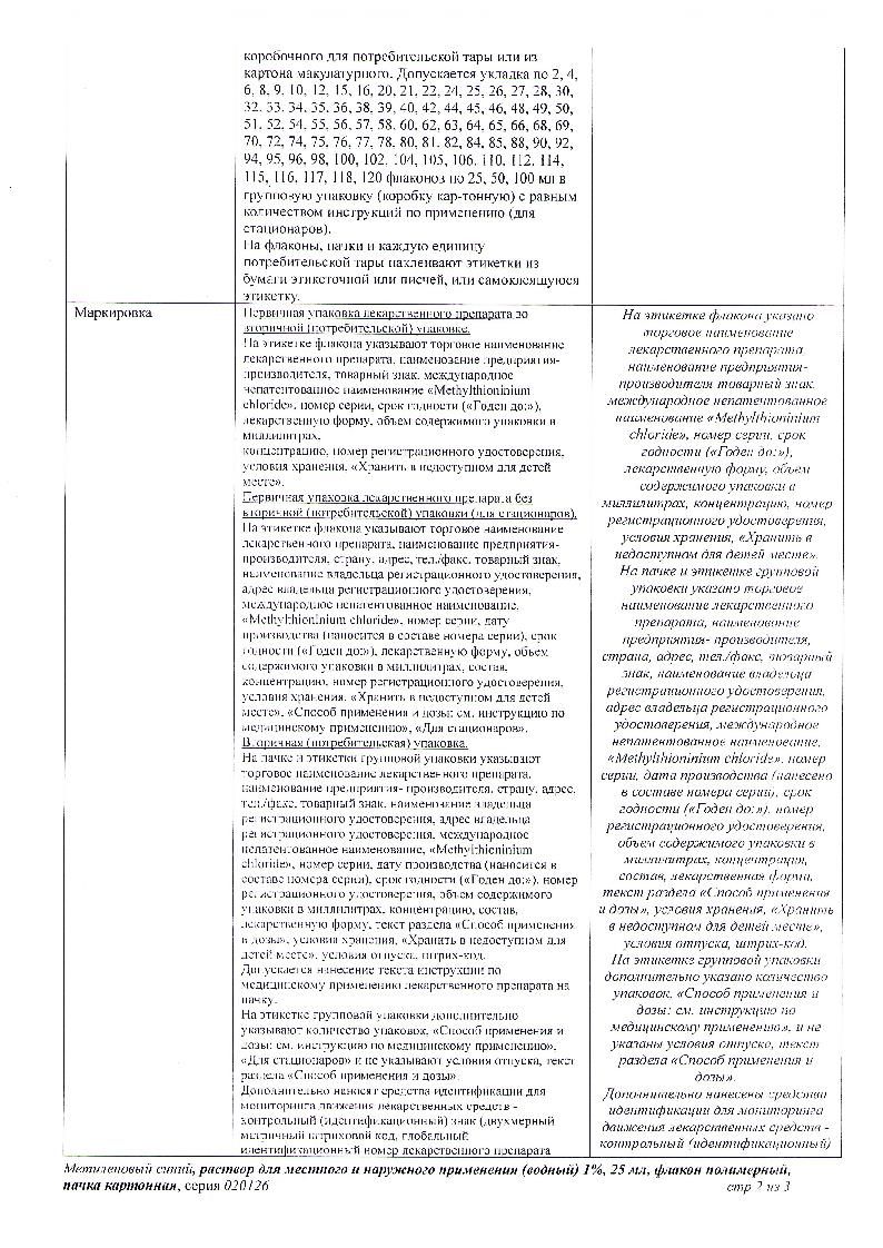 Действующее вещество: метилтиониния хлорид (метиленовый синий) - 10 г;