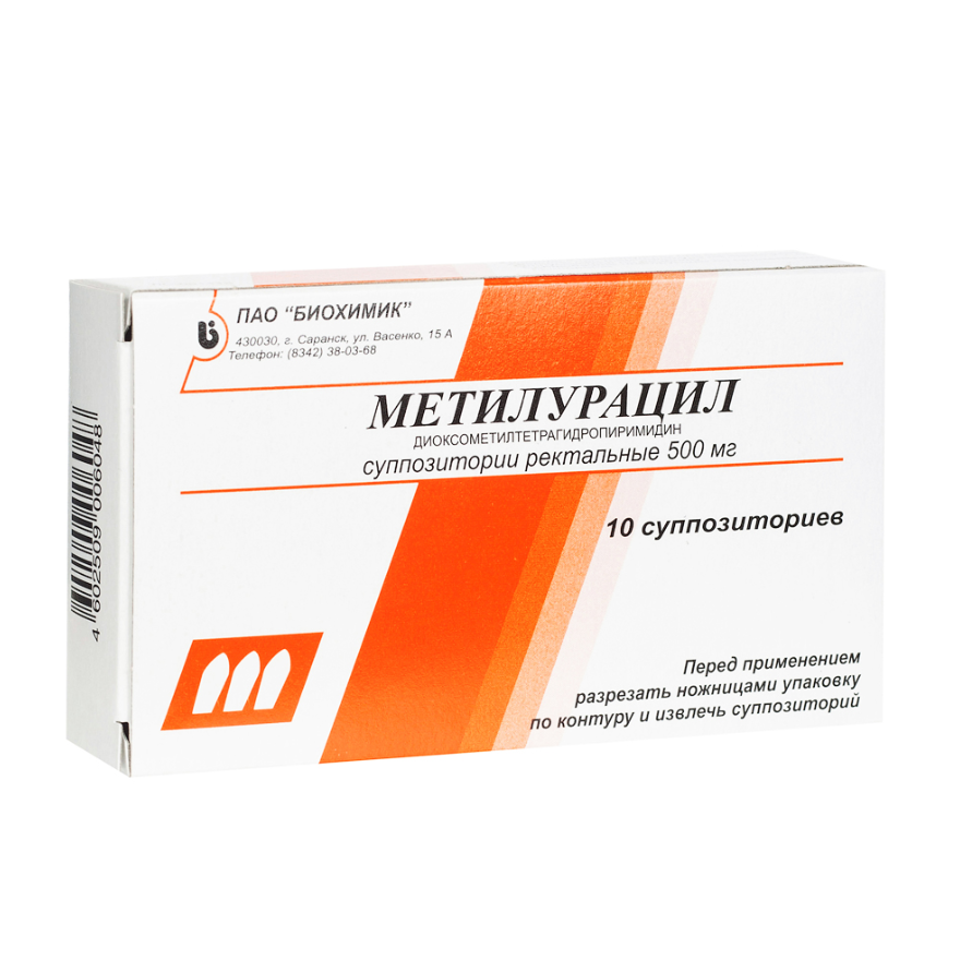 Активное вещество: метилурацил - 0,5 г