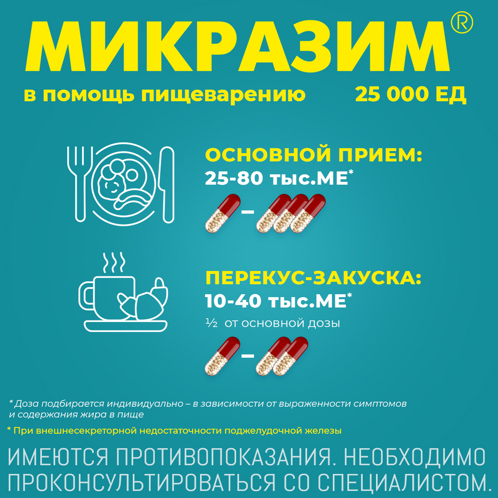 У большинства пациентов доза должна оставаться меньше или не превышать 10000 липазных единиц/кг массы тела в сутки или 4000 липазных единиц/г потребленного жира.