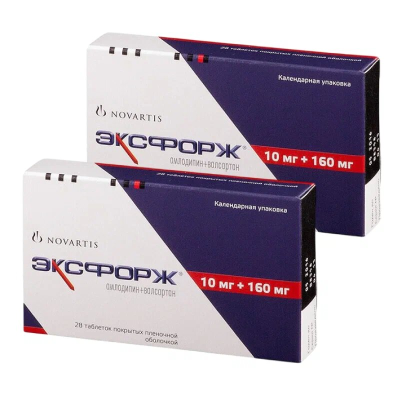 Эксфорж®, 10 мг + 160 мг, таблетки, покрытые пленочной оболочкой