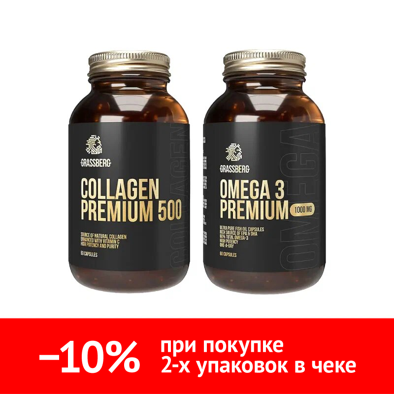 Набор Грассберг Коллаген + Омега-3 Премиум ⭐ купить дешево в онлайн-аптеке Ваша №1 | Москва и Московская область