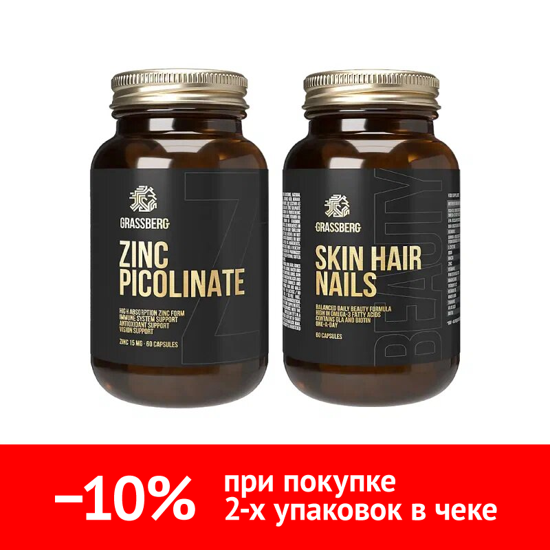 Набор Грассберг Цинк + Кожа Волосы Ногти ⭐ купить дешево в интернет-аптеке Ваша №1 | Москва и Московская область