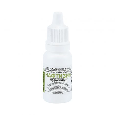 Состав на 1 мл: активное вещество: нафазолина нитрат (нафтизин) - 0,0005 г или 0,001 г, вспомогательные вещества: борная кислота - 0,02 г, вода очищенная - до 1 мл.