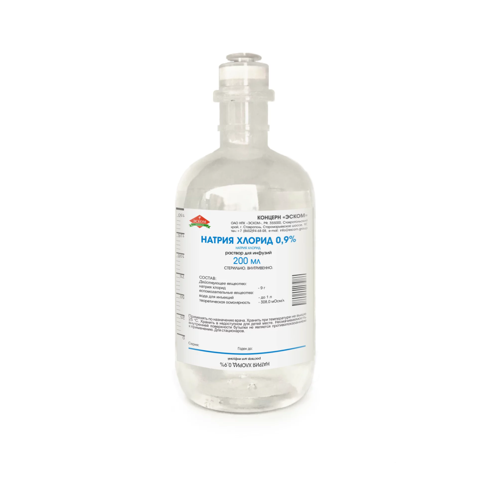 Оказывает дезинтоксикационное и регидратирующее действие. Восполняет дефицит натрия при различных патологических состояниях. 0,9% раствор натрия хлорида изотоничен плазме человека и поэтому быстро выводится из сосудистого русла, лишь временно увеличивая ОЦК (эффективность при кровопотерях и шоке недостаточна).