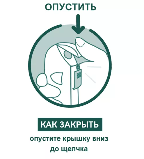 В дно флакона встроена ячейка, содержащая гранулы влагопоглотителя - силикагеля. Не следует нарушать целостность ячейки, содержащей влагопоглотитель. Не проглатывать влагопоглотитель.