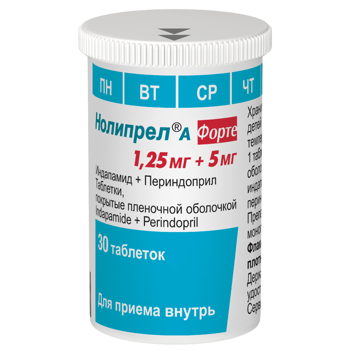 Действующие вещества: индапамида 1,25 мг и периндоприла аргинина 5 мг, что соответствует 3,395 мг периндоприла.