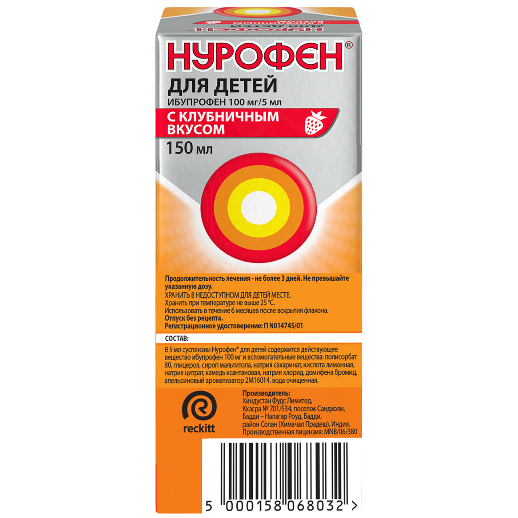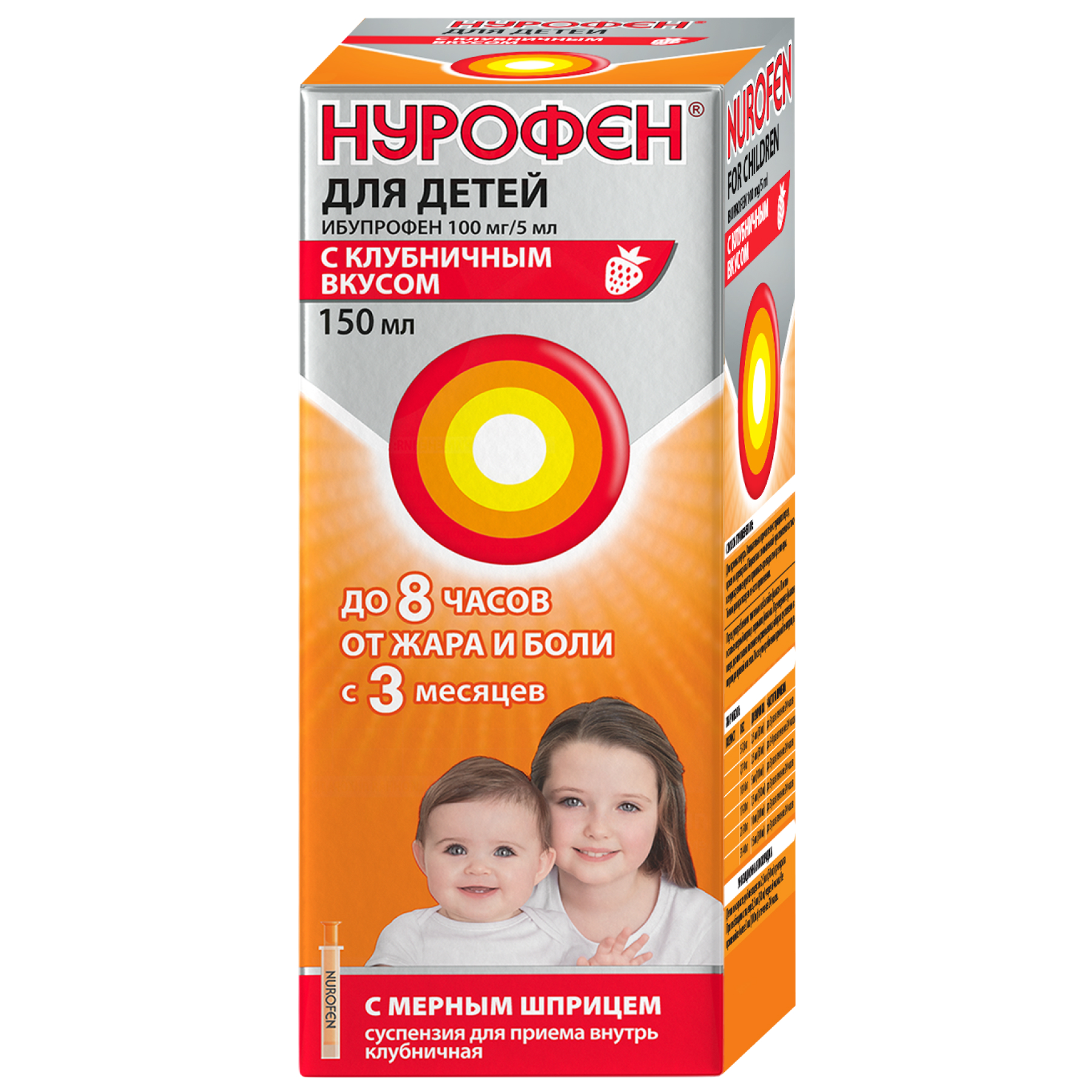 Нурофен для детей 100 мг/5 мл 150 мл суспензия для приема внутрь клубника