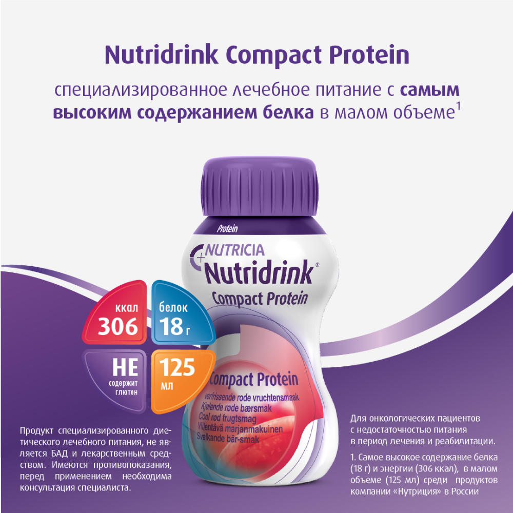 Нутридринк компакт протеин 125 мл 4 шт смесь для энтерального питания фруктово-ягодный вкус