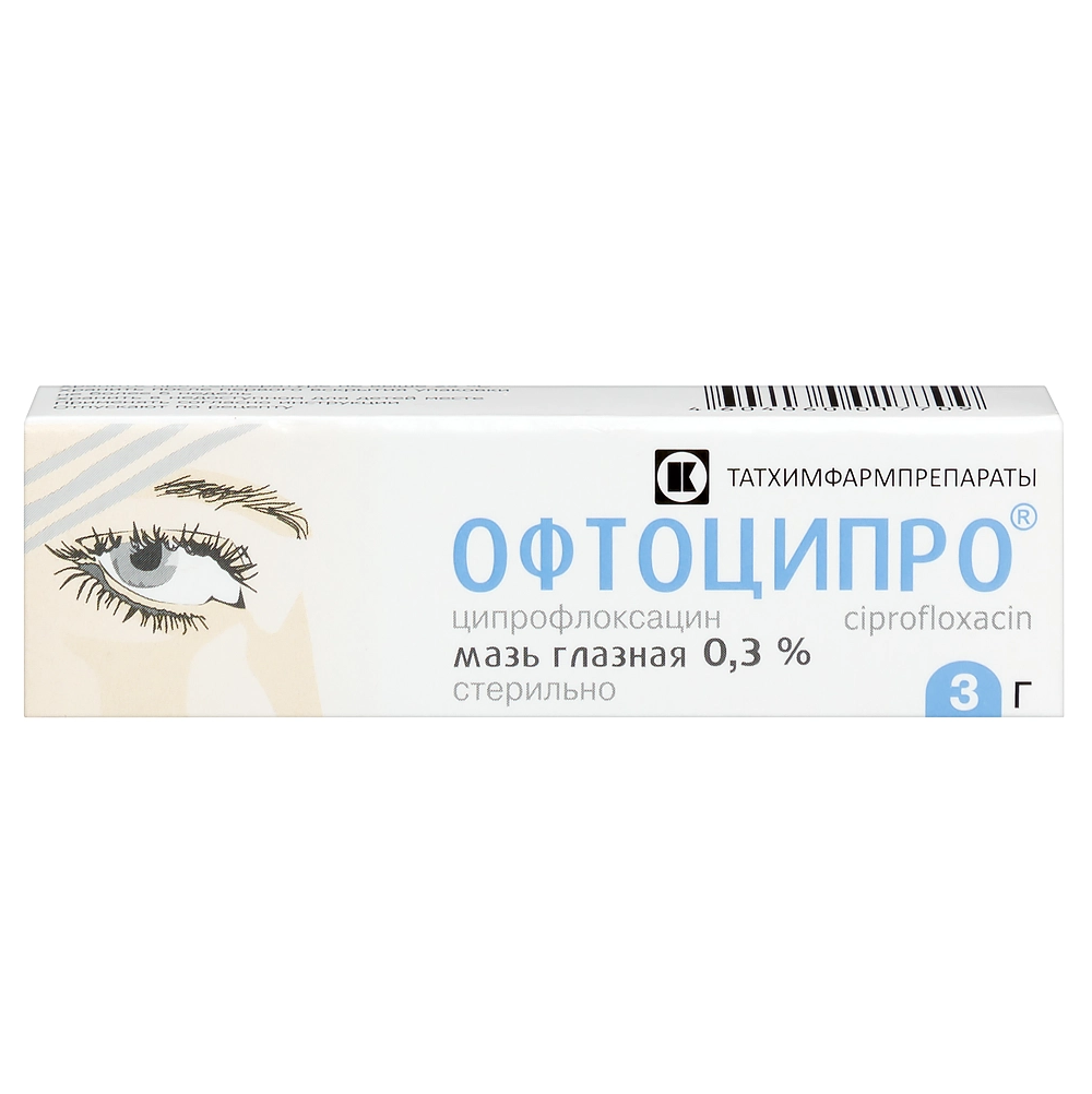 активного вещества: ципрофлоксацина гидрохлорида в пересчете на ципрофлоксацин 0,3г;