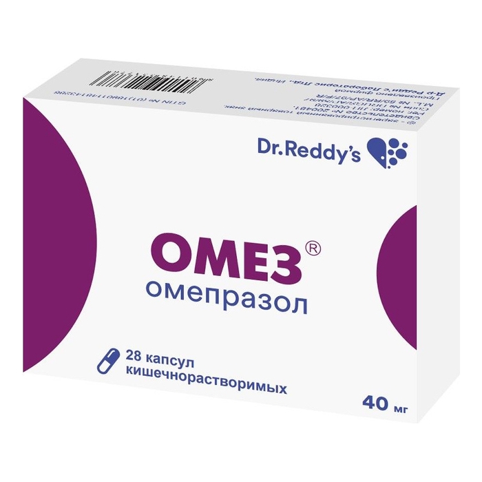 Активное вещество: омепразол 40 мг.