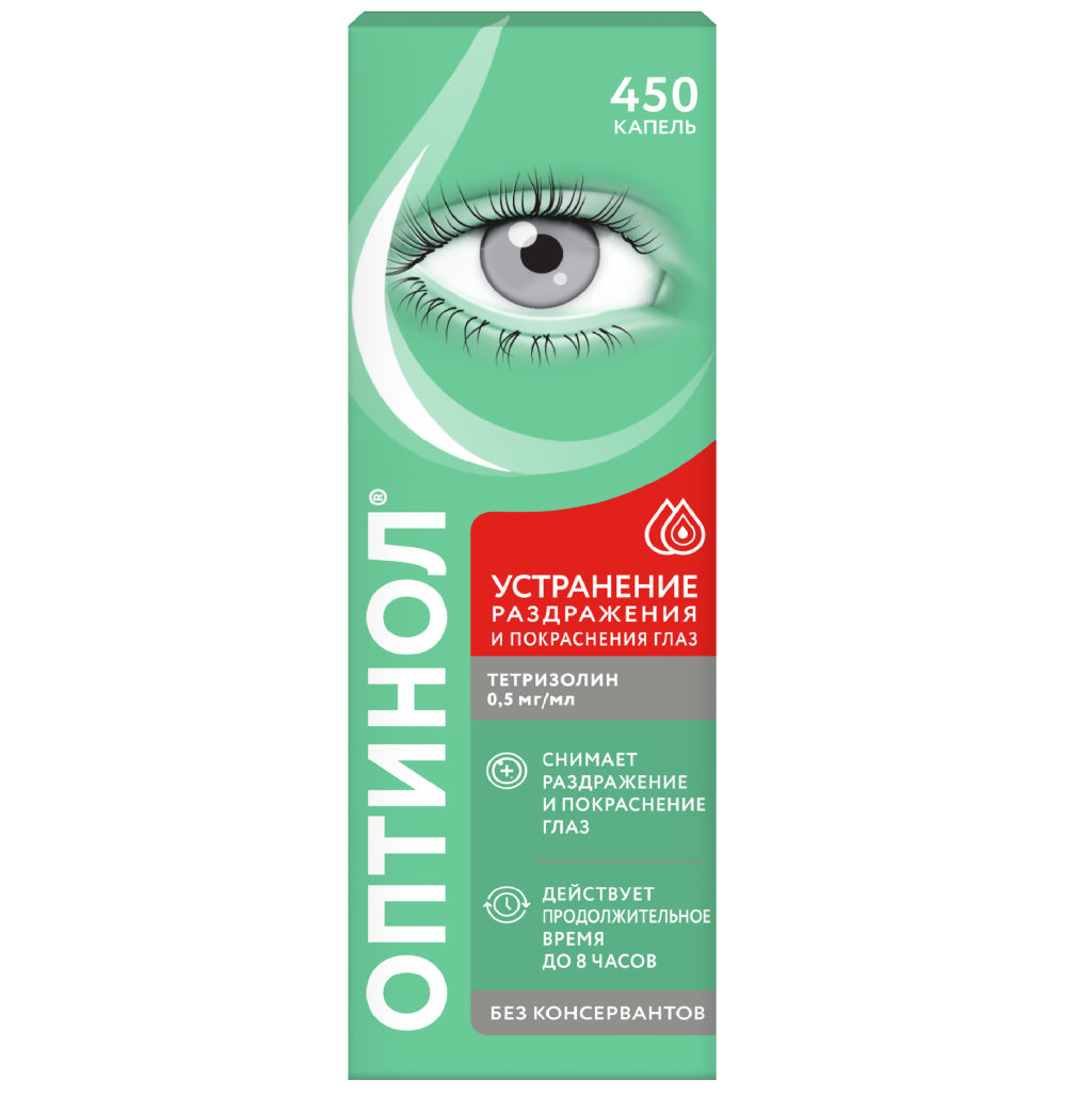 Препарат ОПТИНОЛ® ТЕТРИЗОЛИН должен применяться только при незначительном раздражении глаз. Если в течение 48 часов не происходит улучшения, или, в случае, если раздражение и покраснение сохраняется или прогрессирует, препарат необходимо отменить и проконсультироваться с врачом.
