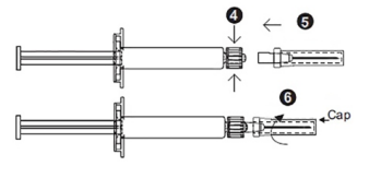 5) Удерживая иглу, зафиксируйте ее на месте, слегка повернув по часовой стрелке (позиция 6). Снимите крышку перед введением.