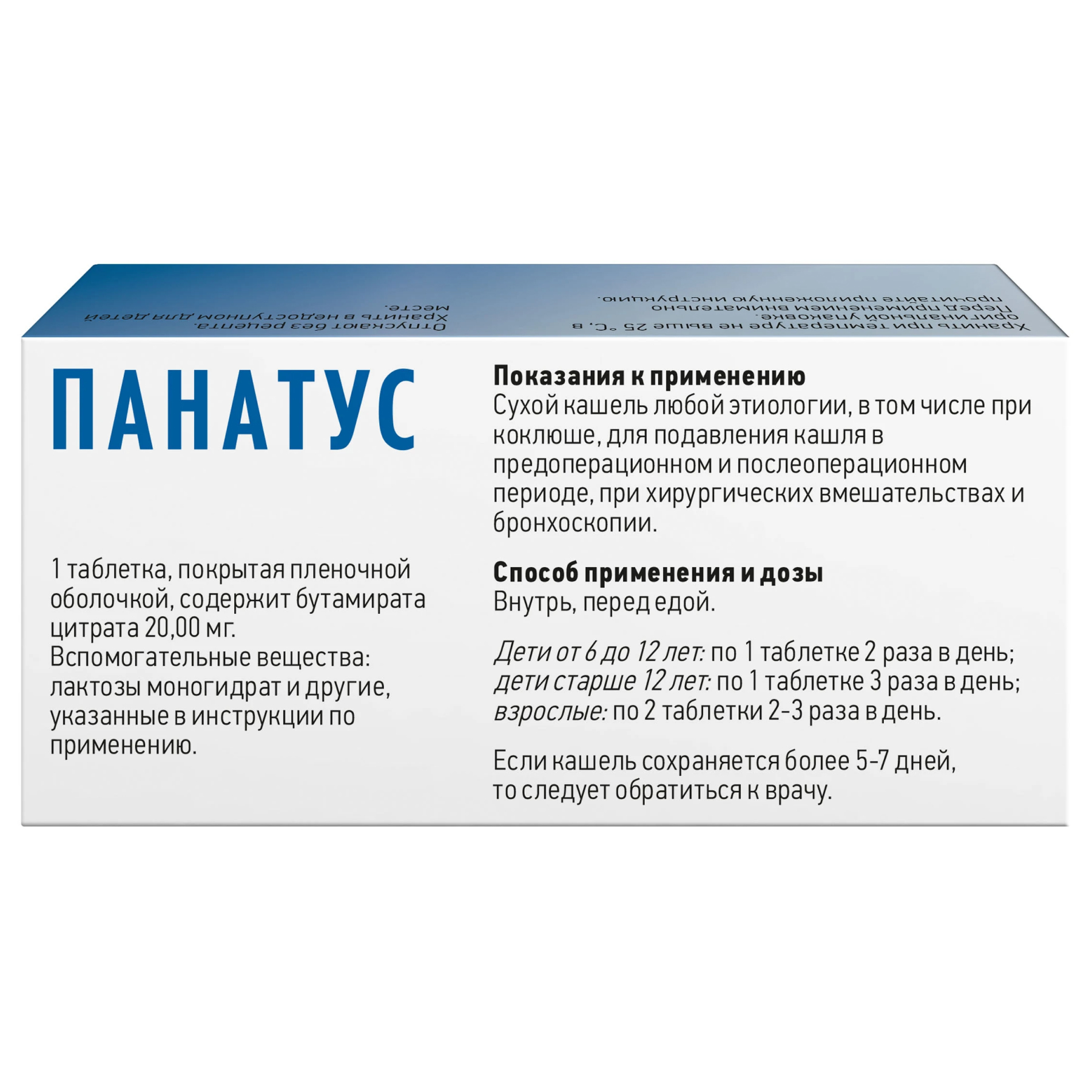 Если после 5-7 дней применения препарата Панатус кашель не прекращается, необходимо обратиться к врачу.