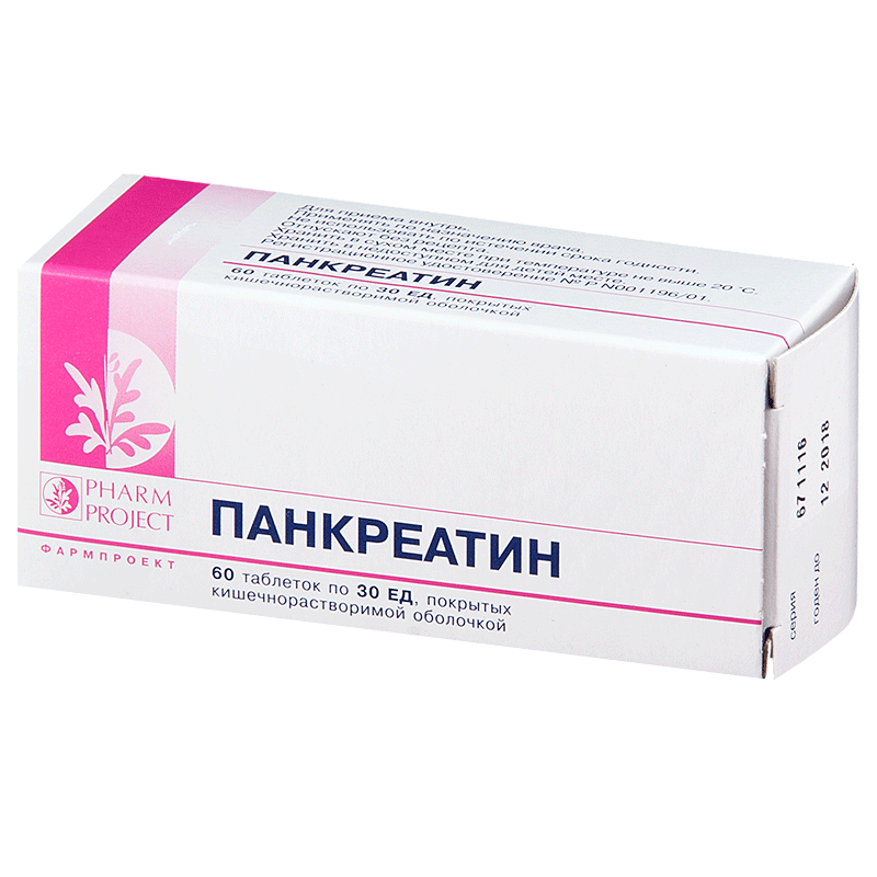 Активное вещество: панкреатин - 30 ЕД.