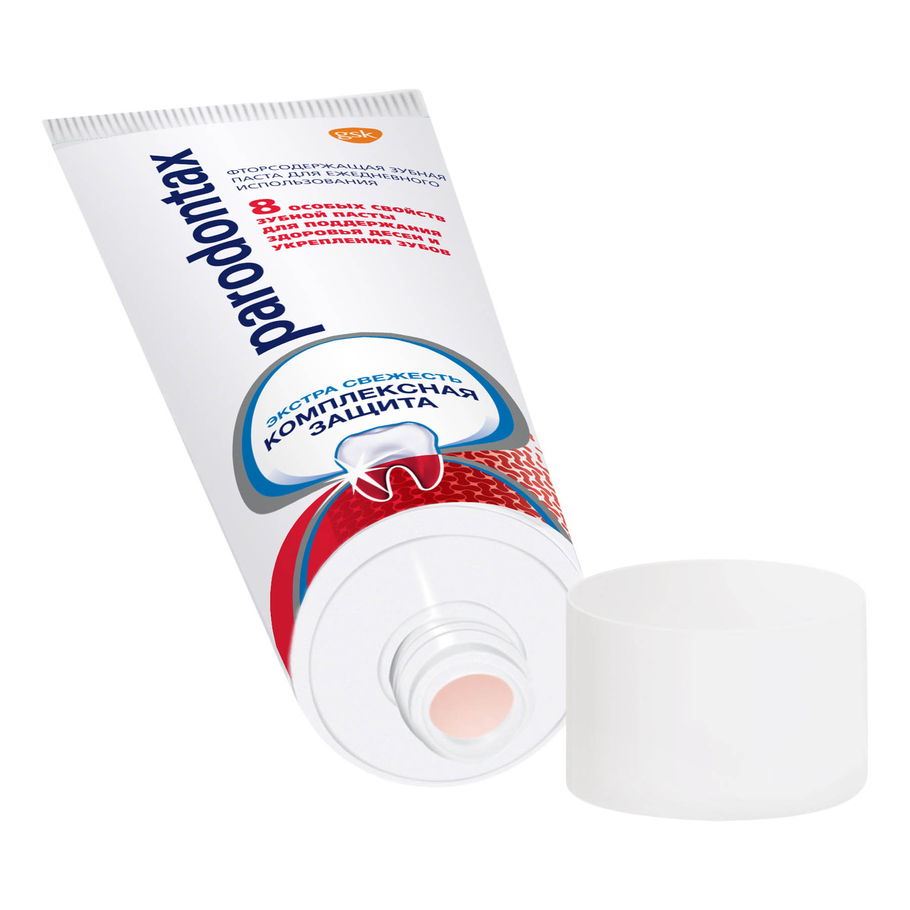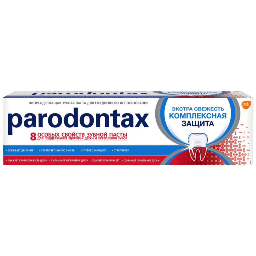 Зубная паста Parodontax Комплексная Защита обладает 8 особыми свойствами для поддержания здоровья десен и укрепления зубов: