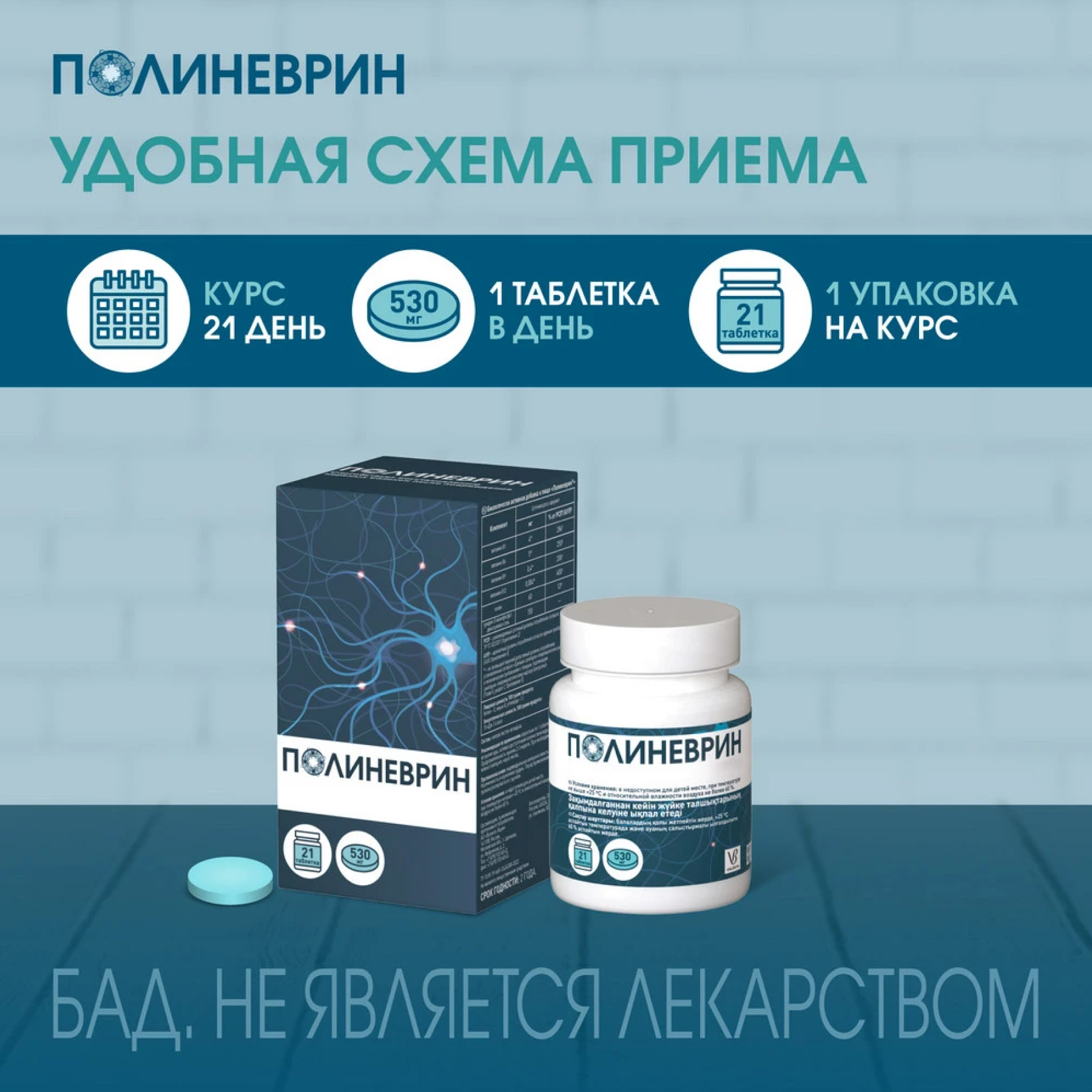 Качественно- количественный состав витаминного комплекса Полиневрин специально разработан для применения при заболеваниях нервной системы, таких как заболевания периферических нервов, при которых особенно важна нормализация энергетических процессов в нервной ткани, защита мембран нервных клеток и волокон от повреждений.