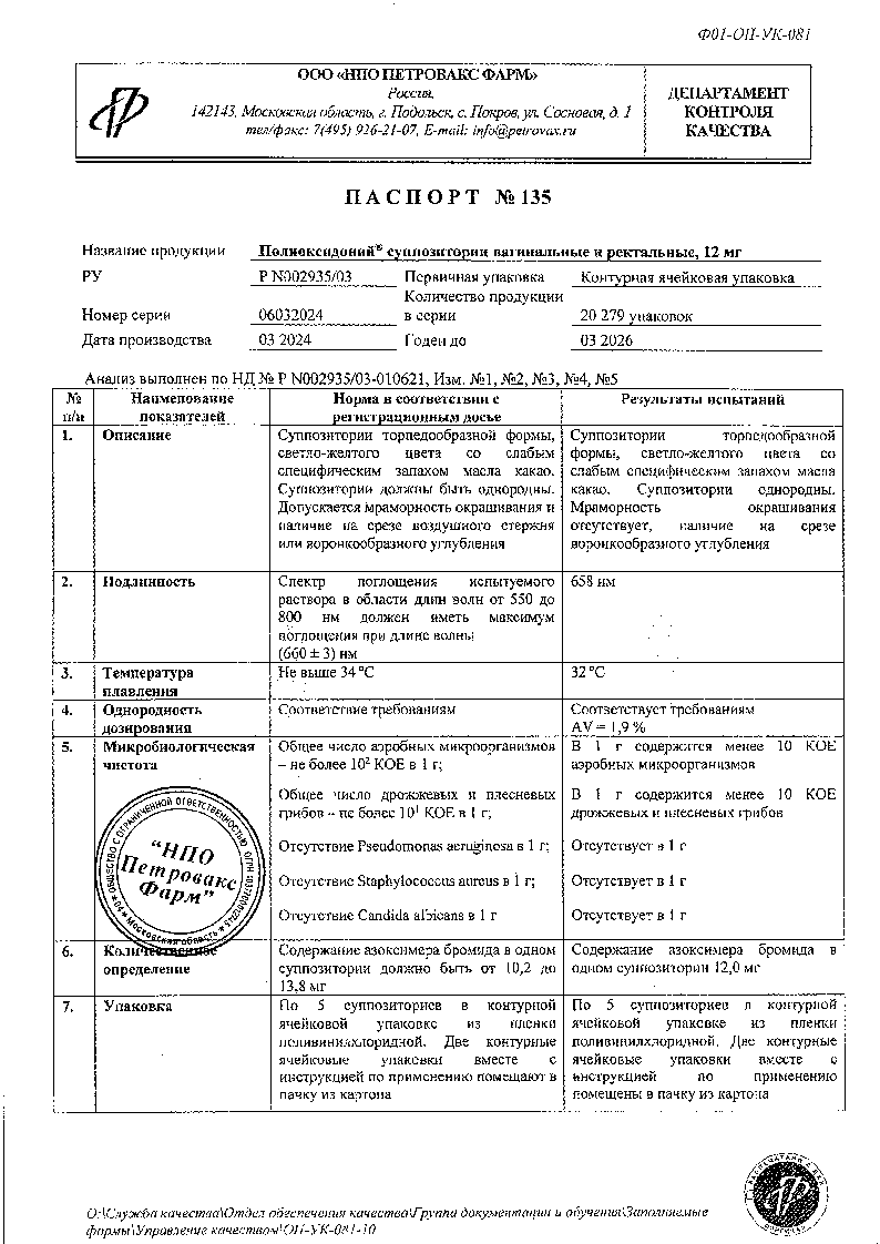 Полиоксидоний 12 мг 10 шт суппозитории вагинальные и ректальные