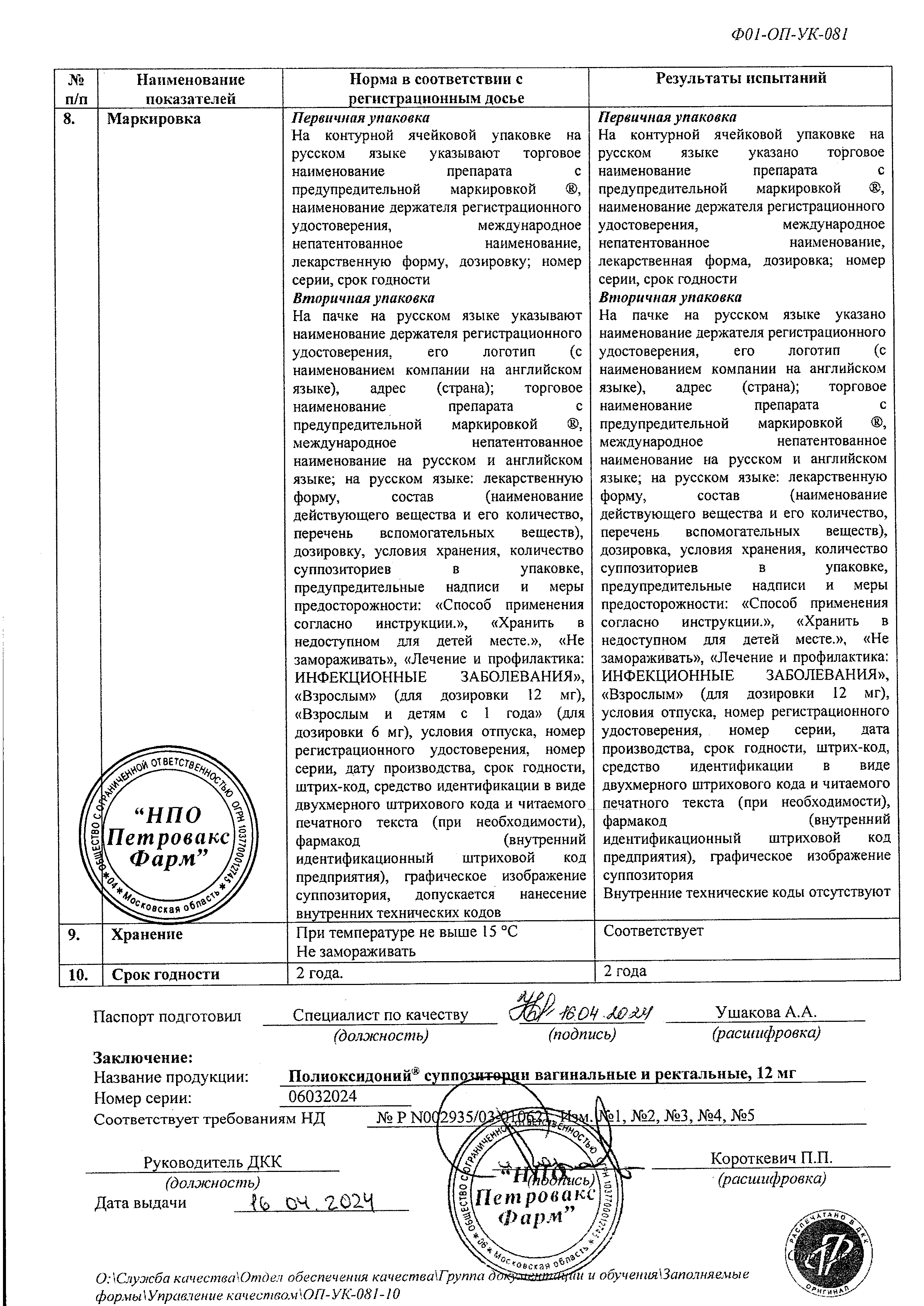 Полиоксидоний 6 мг 10 шт суппозитории вагинальные и ректальные