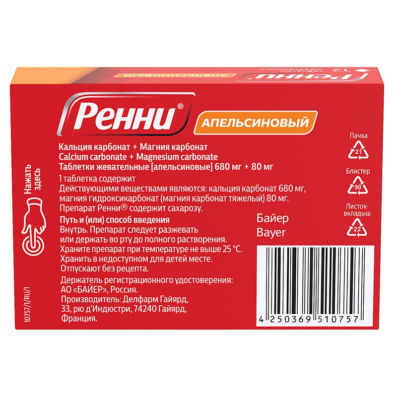 В 1 таблетке препарата Ренни® содержится 475 мг сахарозы, что нужно учитывать, если у вас непереносимость некоторых сахаров.