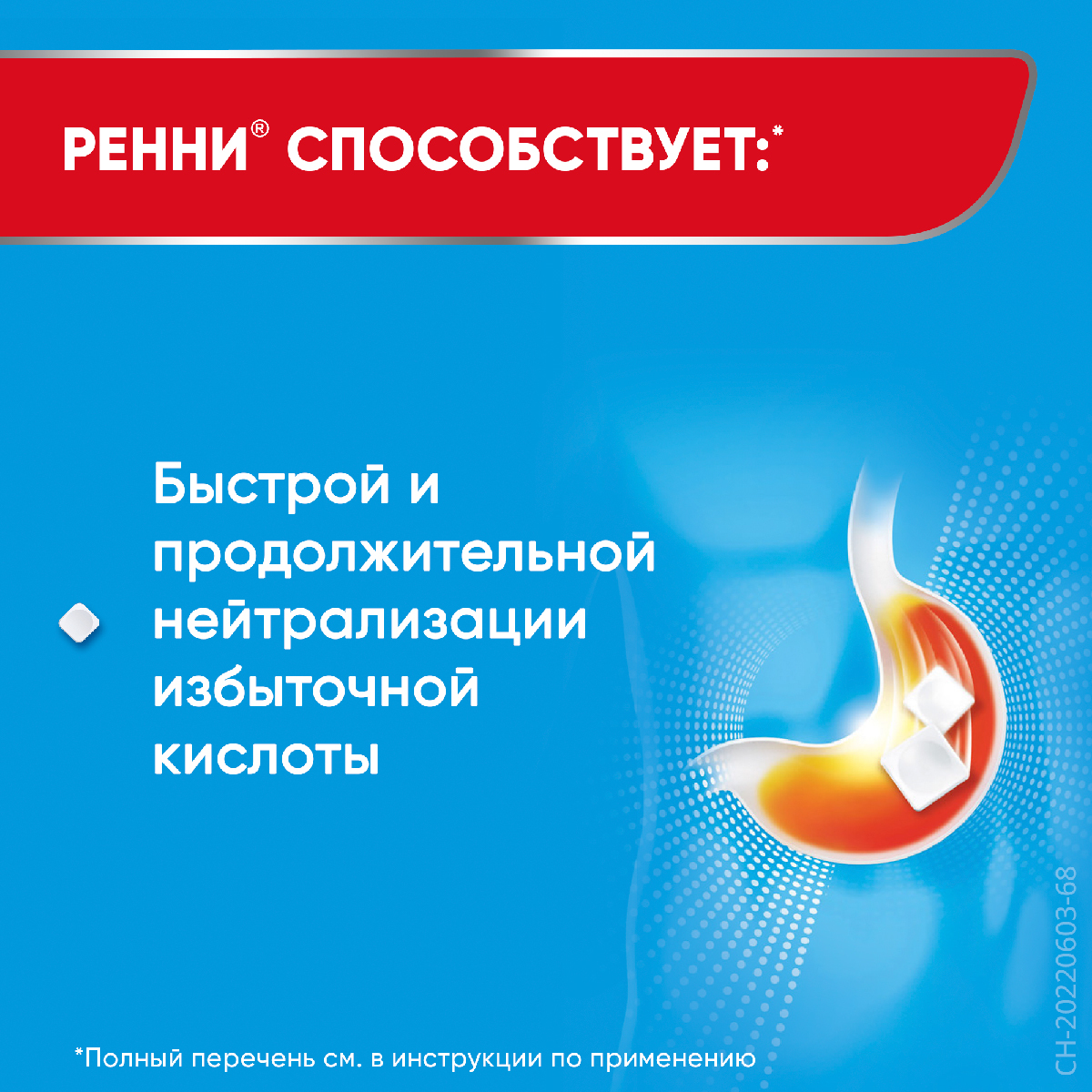 Препарат Ренни® показан к применению у взрослых и детей старше 12 лет для устранения симптомов, связанных с повышенной кислотностью желудочного сока и рефлюкс-эзофагитом: