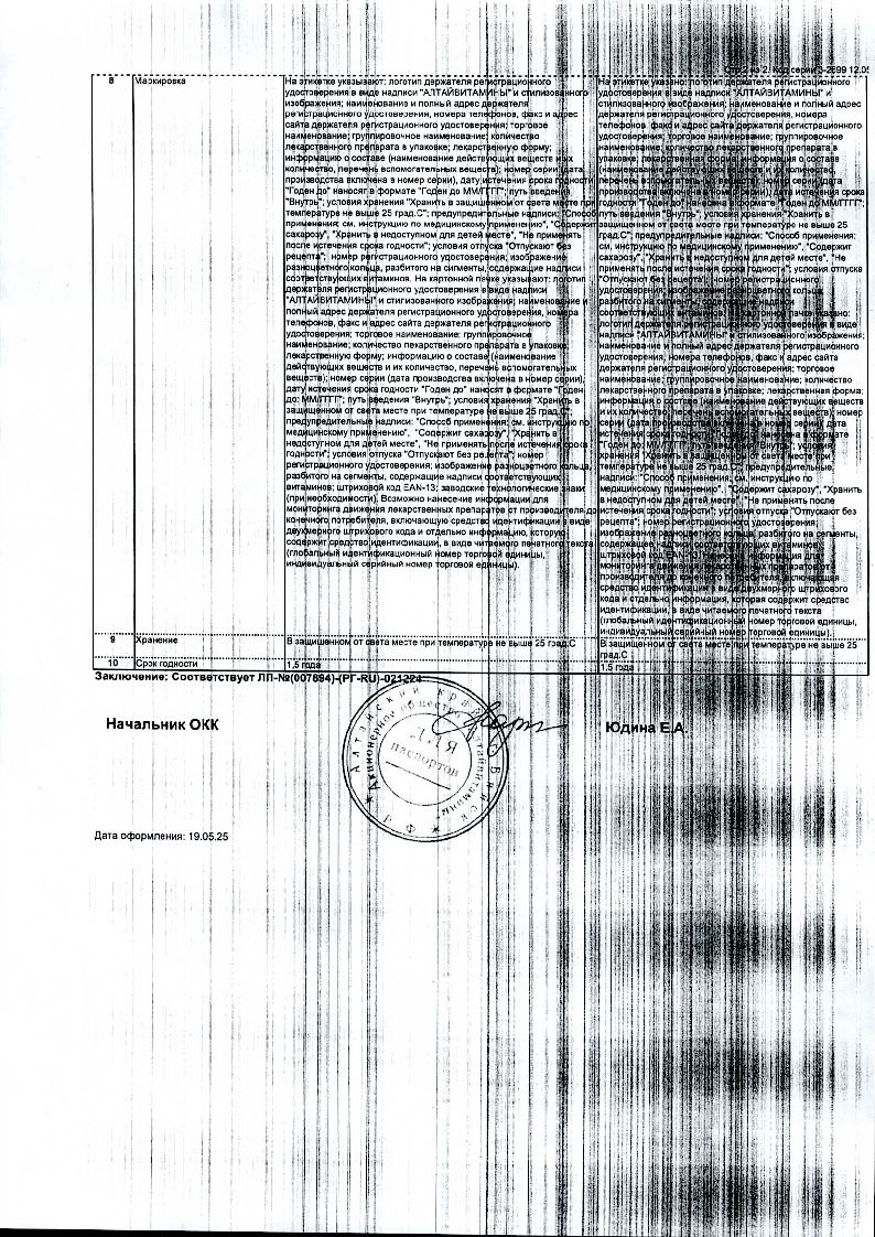 1 год. Не использовать по истечении срока годности, указанного на упаковке.