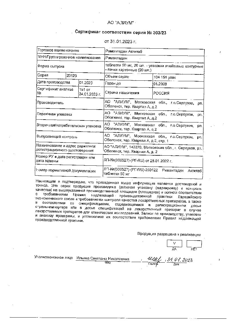 Парацетамол и ацетилсалициловая кислота снижают Cmax римантадина на 11%.
